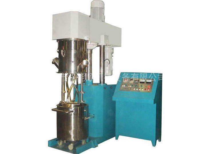 由攪拌桶、攪拌蓋、攪拌動力頭(含兩組低速攪拌槳、兩組高速分散器及一組刮壁槳)、溫控裝置、升降裝置、鎖桶裝置及控制系統(tǒng)等組成。